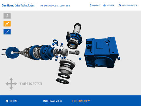 The web function for Version 1.2 allows users with a data-network connection to navigate through Sumitomo Drive Technologies’ new global web site, which is now optimized for mobile devices, for product data, industry-specific information and white papers. They may also use the provided links to visit the company’s Facebook, Twitter and YouTube pages.